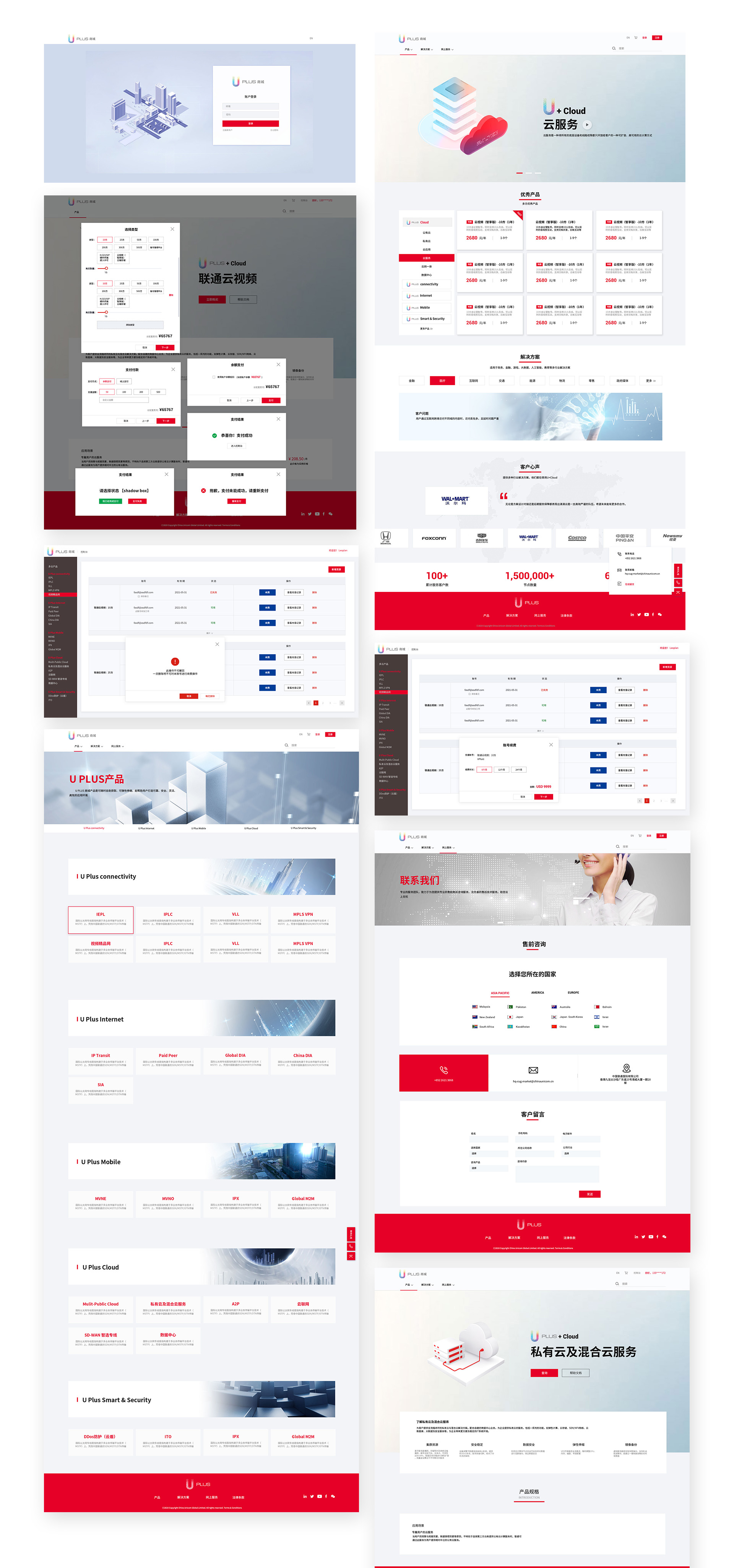 2021年年初,中国联通国际公司委托WP为其在全球范围内打造云平台系统,系统功能包含公有云、私有云、混合云服务器平台的搭建,用户云服务器等云产品在线维护控制台,第三方产品【阿里云云产品】接入平台及优惠券贩卖服务。WP接到委托后,通过对以亚马逊为首的国际云服务商平台的调研,打造了简洁为主,功能突出,交互便捷为基准的平台体验。